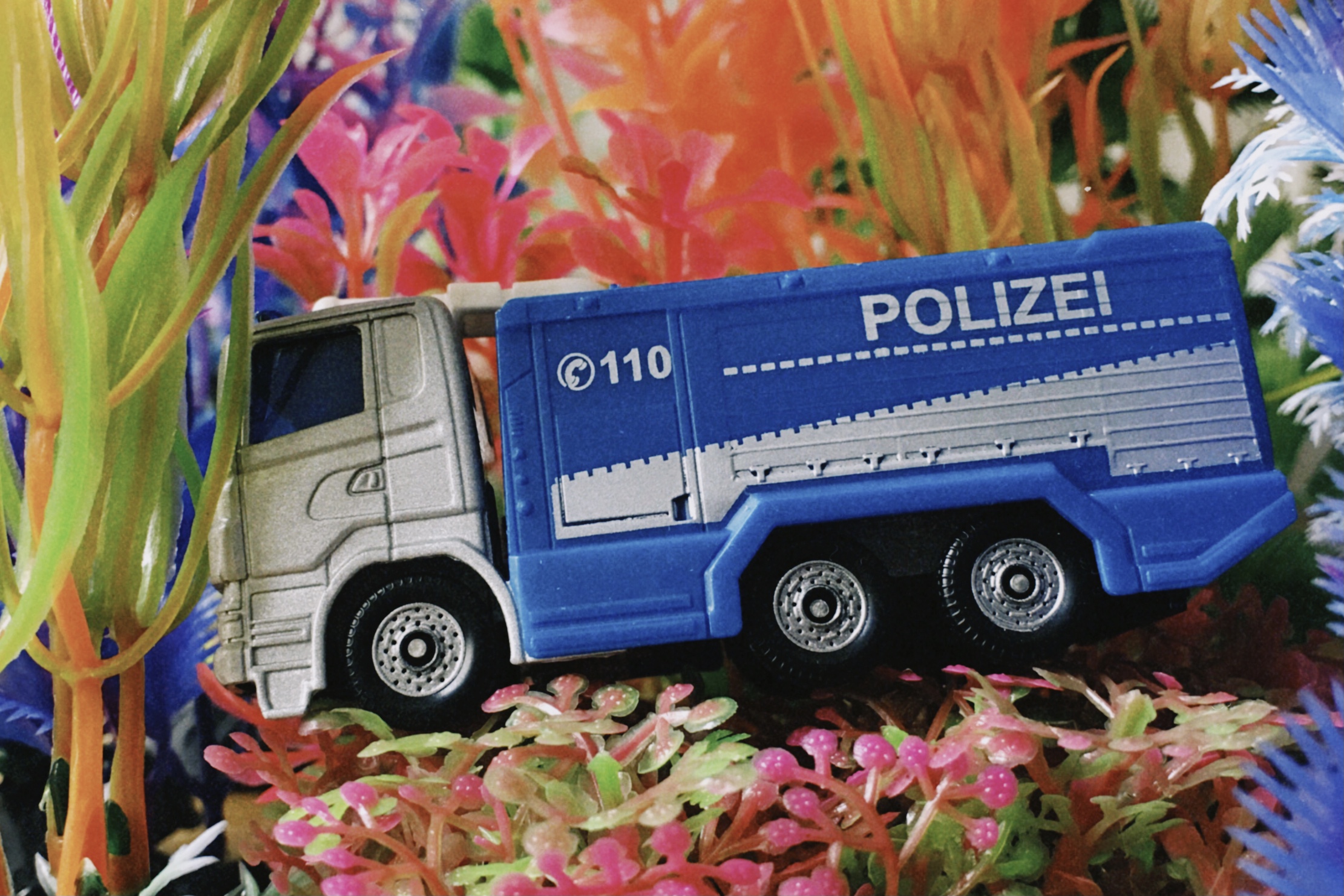 “The installation Tertirary Effects explores water as a weapon of intimidation, its indiscriminate and disproportionate force used for collective punishment, most often in protests and other public showcases of dissent. High-velocity streams of water, thrown from water-cannons, can propel as much as 20 liters per second. Different agents are sometimes mixed into water to create secondary effects: dyes, malodorous chemicals, and invisible UV markers are used for the purpose of post-factum identification, and often arrest, of protestors.”